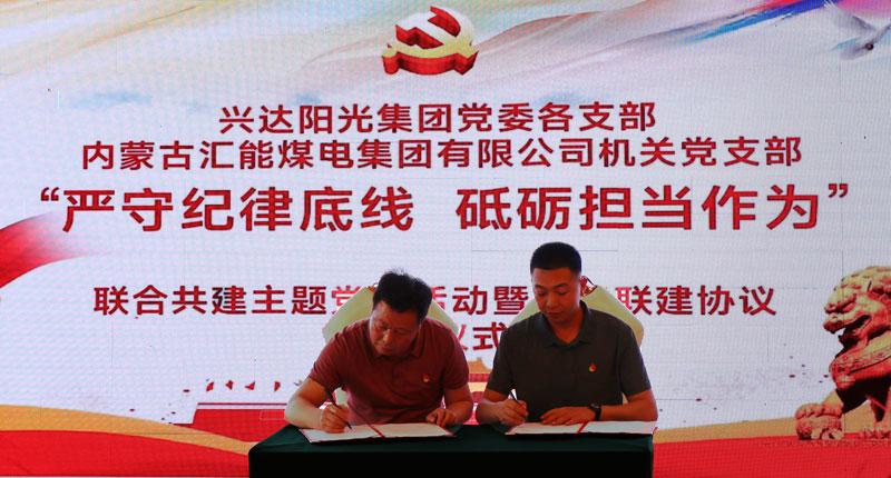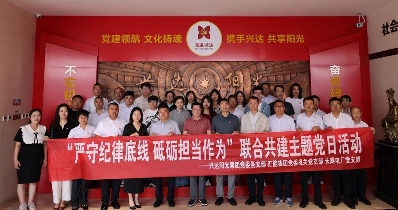 興達陽光集團董事長楊喜林,黨委書記楊寧參加了活動并陪同全體黨員參觀了興達集團黨建、企業展廳,介紹了興達集團的黨建成果和企業文化。活動中,全體黨員重溫了入黨誓詞,觀看了嚴守紀律主題教育片,體驗了互動式主題教育動畫。最后,匯能集團黨委與興達陽光黨委簽署了黨支部黨建聯建協議書。