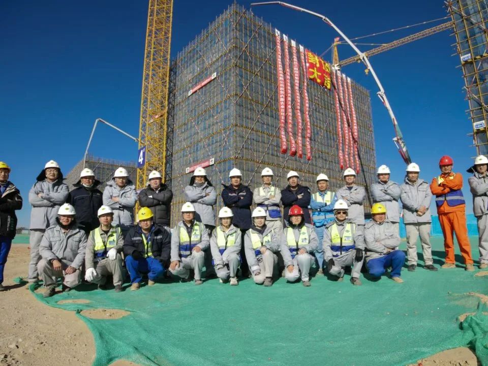 匯能集團卓正新材料項目氣化裝置氣化框架 41.46m 喜迎混凝土封頂